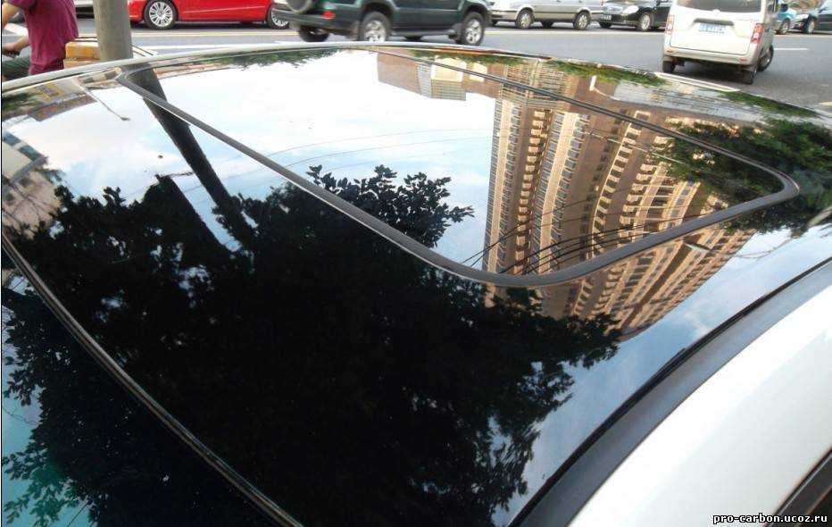 Для имитации панорамной крыши используется качественная виниловая пленка известных фирм Oracal или KPMF. Срок службы покрытия составляет до 7-ми лет. Предпочтения отдаются материалам карбон, глянец, матовому.