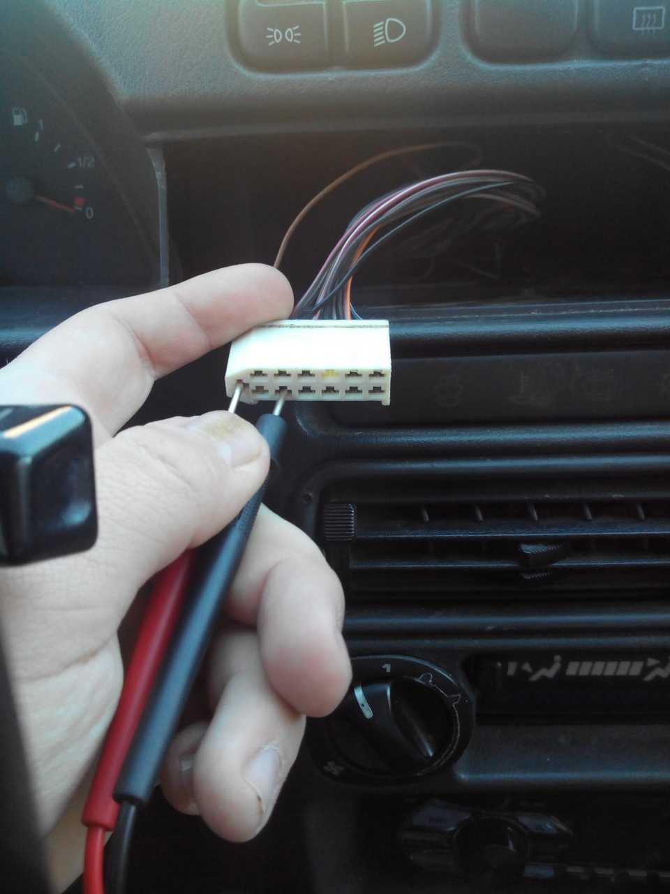 Думаю что сейчас пойду проверю, но вспомнил что где то потерял свой мультиметр, оказалось что он у брата был :), хватаю его и быстрей давай смотреть напругу на фишке, оказывается напруга на фишке была, но не везде, и как писал человек, что с замка зажигания +12 не приходит.
