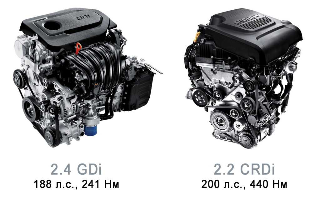 ΠΠ²ΠΈΠ³Π°ΡΠ΅Π»ΠΈ 2.4 GDi Π±Π΅Π½Π·ΠΈΠ½ ΠΈ 2.2 CRDi Π΄ΠΈΠ·Π΅Π»Ρ