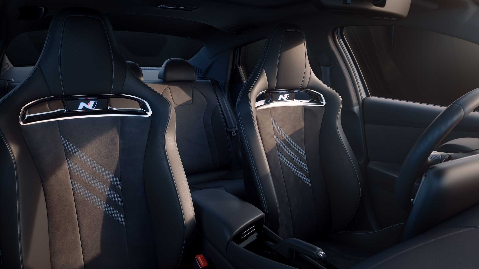 Передние сиденья не оснащены электроприводом, но нам по-нраву эстетика тонких, усиленных гоночных сидений и особенно то, что на каждом из них есть фирменный знак N прямо под подголовником, который загорается, если открыть дверь. Однако они немного жестковаты, и поскольку управляются вручную, поиск подходящего водительского положения занимает немного больше времени, чем во многих других автомобилях.
