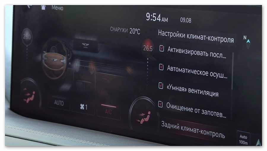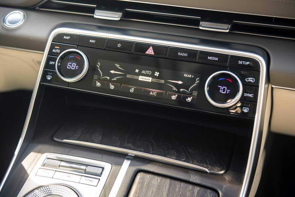 Также модель GV80 оснащается трехзонным климат-контролем: две шайбы управления расположены на центральной консоли спереди, две – сзади.