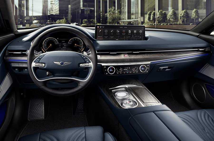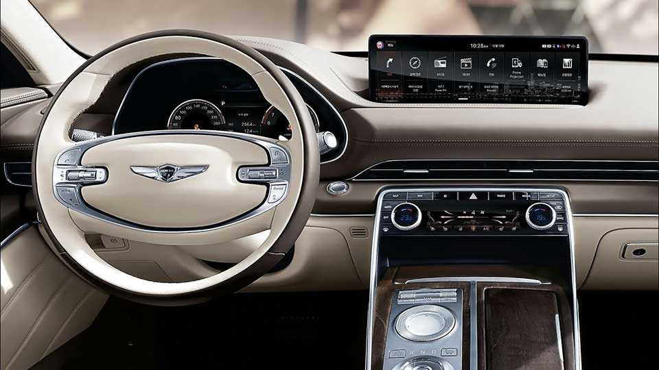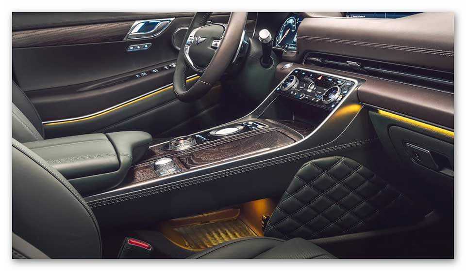 Новая модель из Южной Кореи выделяется первоклассным интерьером, который полностью соответствует экстерьеру седана. Автовладельцы явно оценят высококачественную кожу Хендай Генезис, которая выступает в роли покрытия посадочных мест. Кроме этого, не обошлось без других высококачественных материалов, встречаемых по всему салону. Это натуральное дерево, алюминий и так далее.