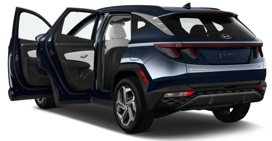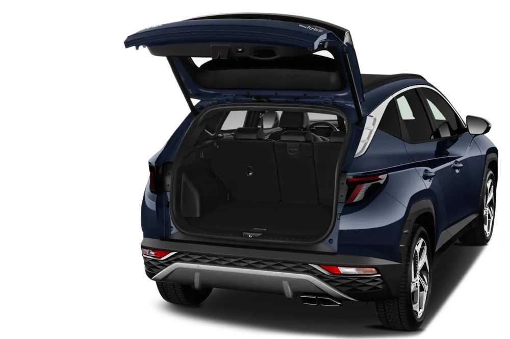 На боковине кузова Hyundai Tucson IV поколения имеется выраженная линия, расположенная выше ручек. Боковое остекление переходит в задний треугольный элемент с нижней гранью, резко уходящей вверх. На крышке багажника имеется массивный спойлер для защиты задка от загрязнения. Светотехника разделена на 2 части, соединенные горизонтальной линией. На бампере имеются декоративные элементы с граненой поверхностью и развитый диффузор, направляющий загрязненный поток воздуха из-под днища кузова вверх.