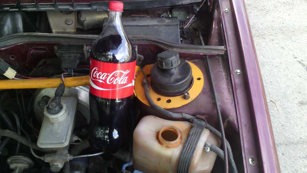 Многие автолюбители чистят свои радиаторы кока-колой. В этом есть логика, потому что в ней содержится ортофосфорная кислота, которая отлично удаляет накипь и ржавчину с деталей. Но также в кока-коле есть сахар, который может засорять охладительную систему. Концентрация кислоты в коле высокая, это может привести к разрушению резинок в системе. Также в кока-коле есть газы, и если включить мотор, то эти газы начнут нагреваться и расширяться, что не очень хорошо скажется на моторе.