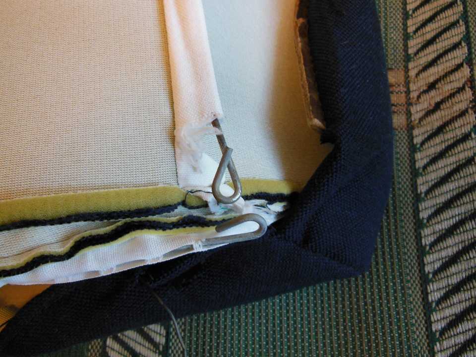 По всему периметру чехлу проходит тонкая стальная проволока, с помощью которой натягивается и фиксируется сам чехол.