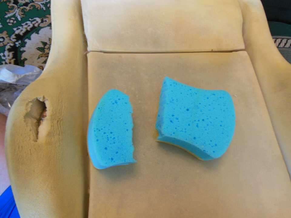 Вынимаем всю стальную проволоку и в стиральную машину! Пока всё это дело стиралось и полоскалось, занялся мелким ремонтом поролона сиденья, которое ввиду своей старости износилось и появилась дыра.