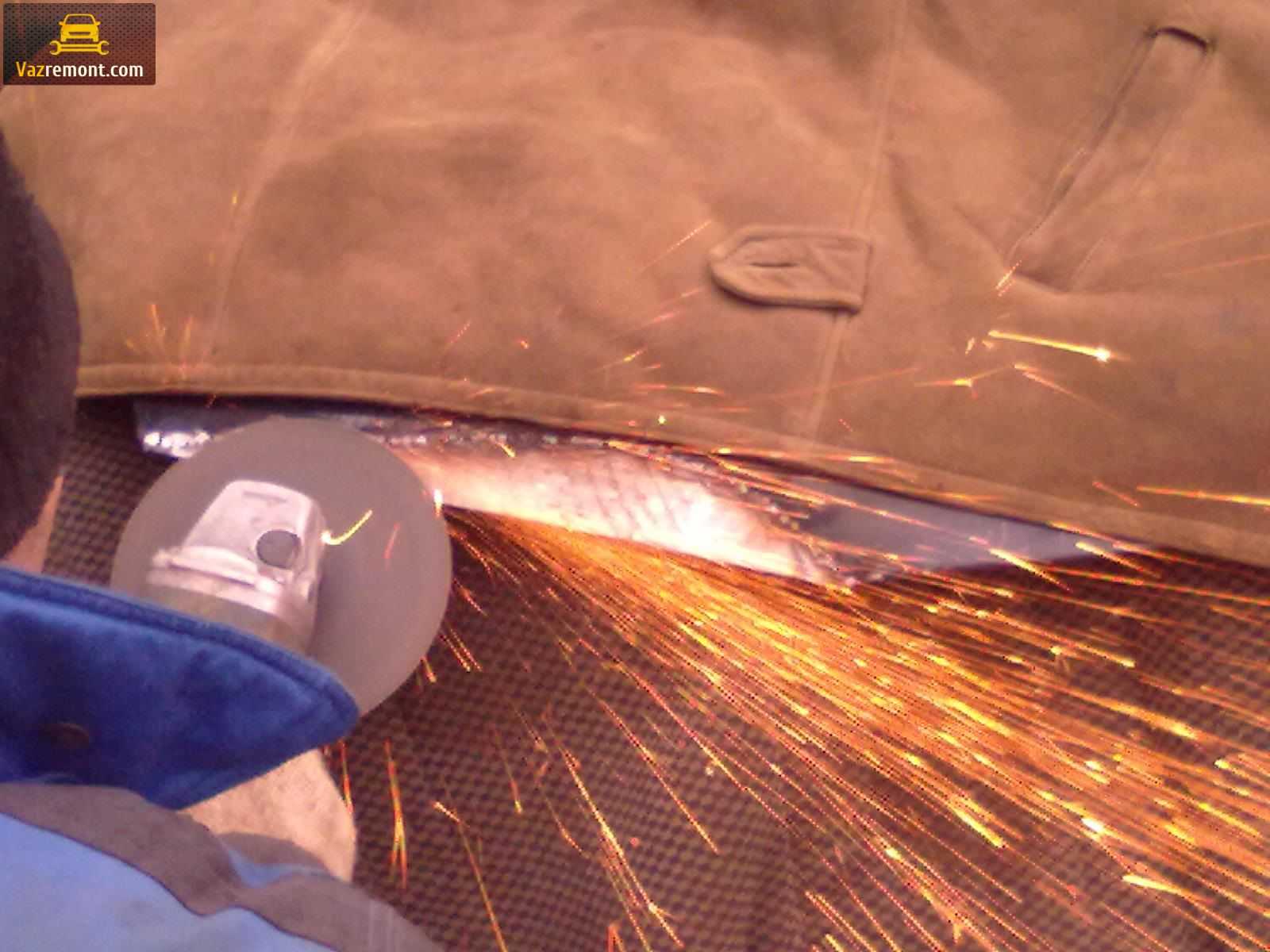 Сначала нужно при помощи точильного круга и болгарки убрать