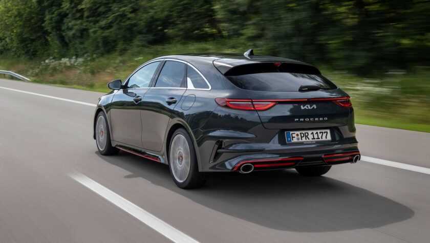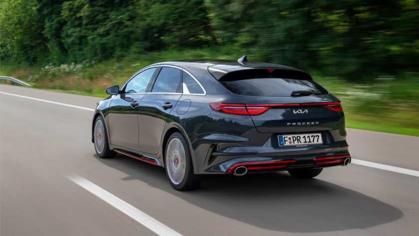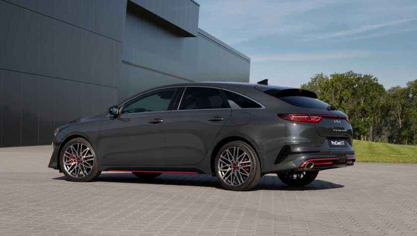 Длина и ширина остались прежними (4605 и 1800 мм.), а вот дорожный просвет спорт-универсала варьируется: в Европе Kia Proceed более спортивен – 135 мм., а в российской спецификации клиренс было решено поднять до 150 мм. Еще больше «спорта» во внешности авто дарит версия GT, которая получает 18-дюймовые колесные диски и специальные покрышки, но лишается противотуманок, вместо которых размещается хромированный декор.