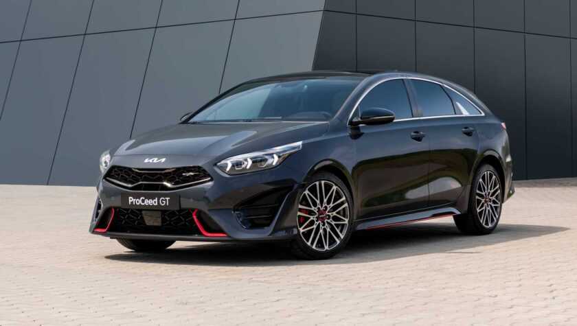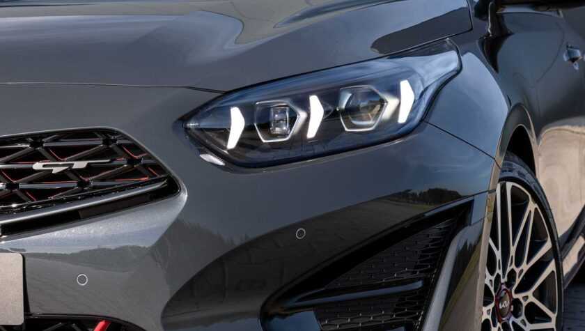 Программа рестайлинга включила в себя изменение фальшрадиаторной решетки и переднего бампера. На последнем появились небольшие перемычки, соединяющие боковые воздухозаборники с колесными арками. Обновленный Kia Proceed 2022 года уже в начальной комплектации будет оснащаться светодиодной оптикой, причем, ей снова сменили «начинку», разместив вертикальные модули вместо «точек».