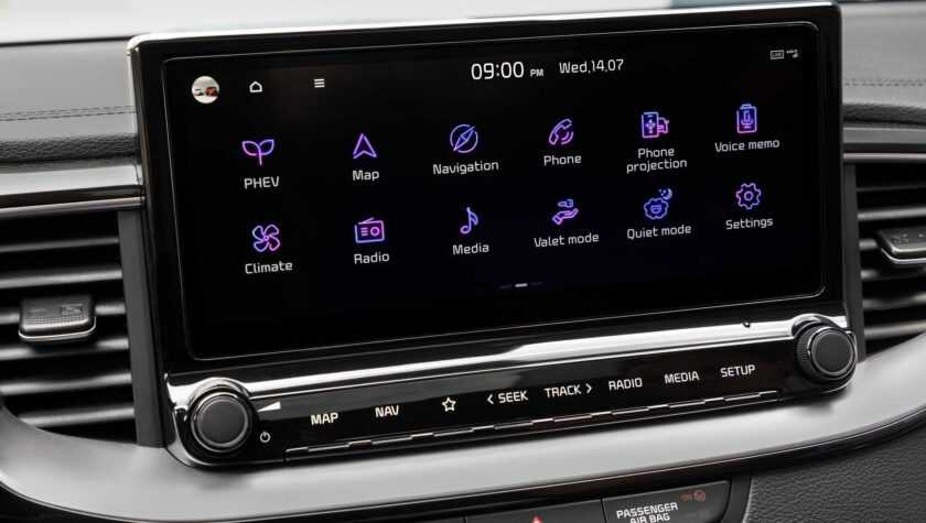 В Кия Просеед установлена двухуровневая центральная панель, в верхней ее части дизайнеры бренда добавили экран для взаимодействия с медиасистемой автомобиля. Там же находятся кнопки для управления музыкой, вентиляционные дефлекторы с окантовкой из хрома.