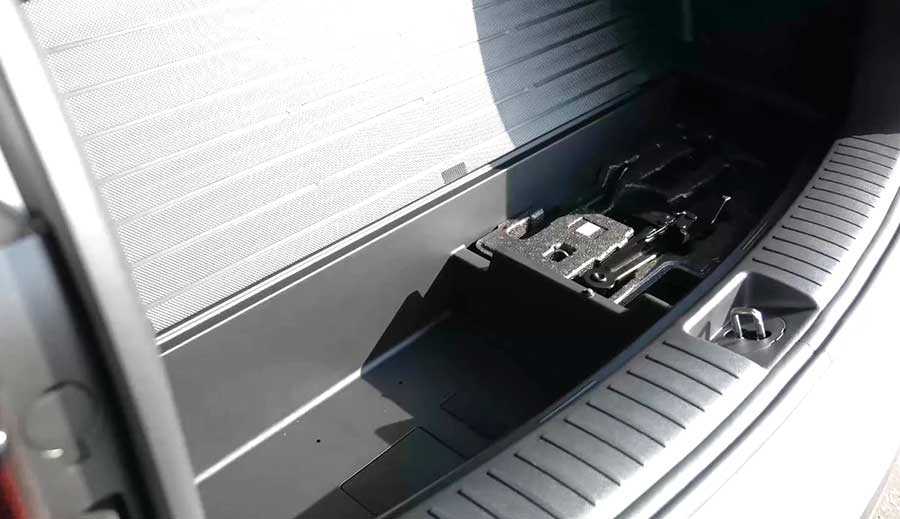 Но нужно аккуратно открывать крышку, если помещен легко перекатывающийся груз, так как он может выпасть. Еще стоит отметить, что стандартная для всех внедорожников и хэтчбеков полка, закрывающая грузы, может находиться как на своем «рабочем» месте, так и храниться под фальшпанелью пола.