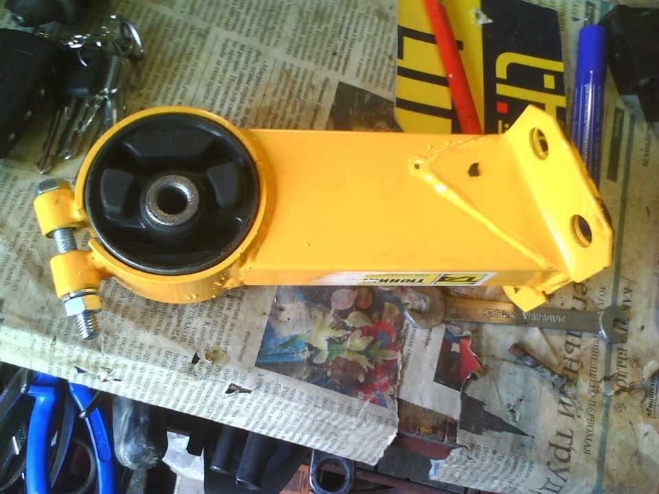 Только не долго, в ходе установки стало ясно что передняя опора движка садится на балку и начинает передавать все вибрации на кузов, идем в тырнет выяснем что можно сделать, находим что в природе существуют жесткие тюнинг опоры для движка, у которых возле подушки гораздо меньший диаметр, отправляемся на поиски и приобретаем.