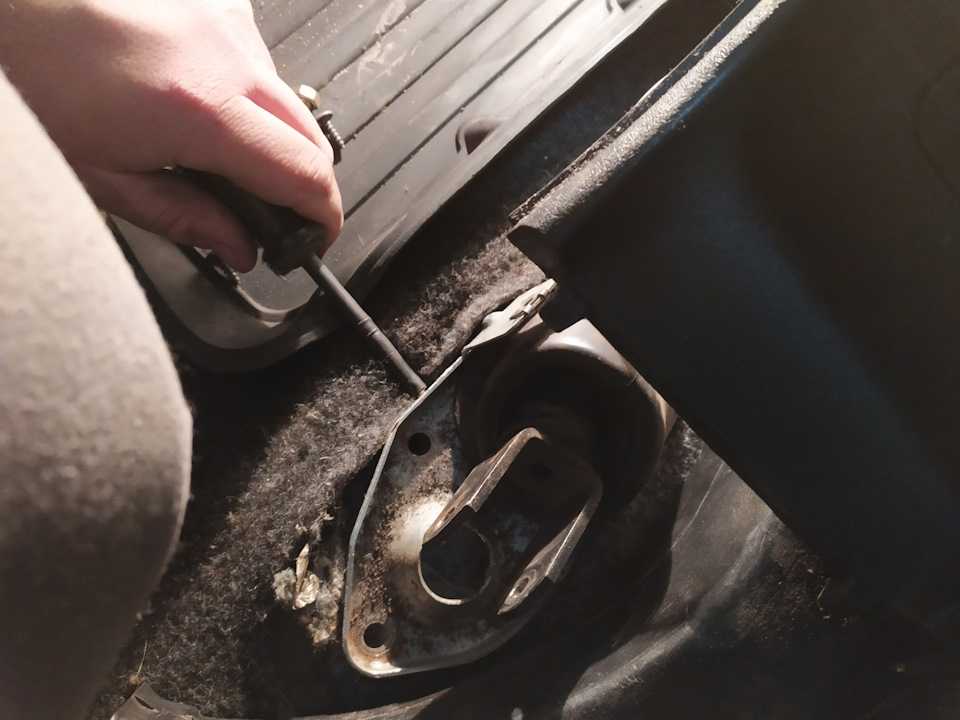 - В салоне автомобиля необходимо снять платформу, которая закрывает доступ к деталям трансмиссии и коробки передач. Держат платформу 5 болтов;
