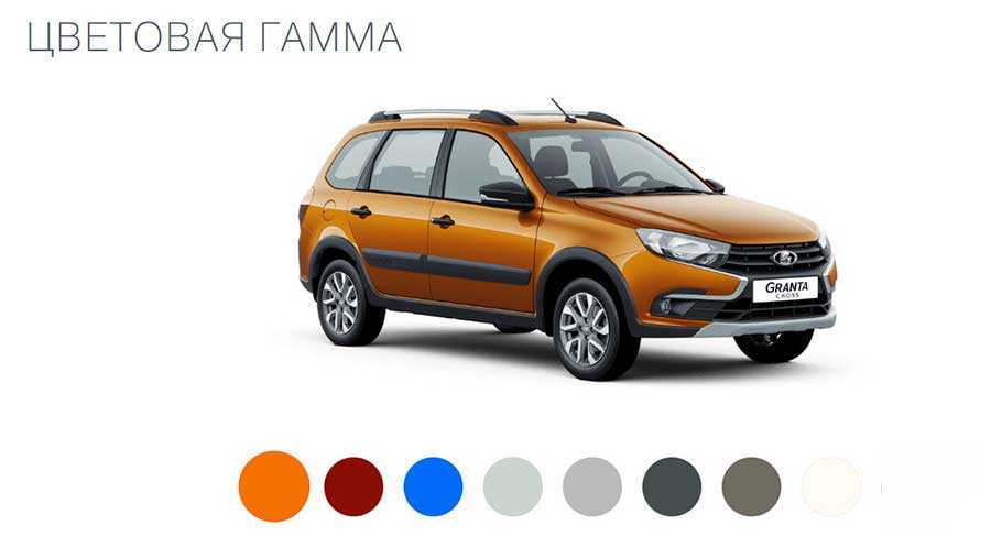 Несколько отличается цветовая гамма у автомобиля Granta Cross, где без доплаты доступны не только «Белое Облако» и «Пантера», но также и «Кориандр». К тому же здесь добавляется оранжевый цвет «Аурум», с ним машина становится дороже на 15 тысяч рублей.