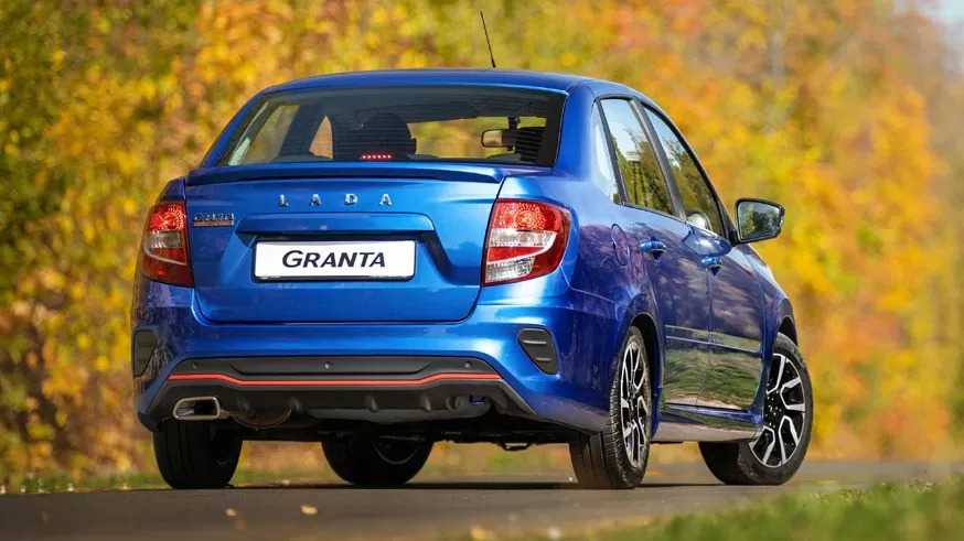 Внешний вид сзади Lada Granta Drive Active’22 демонстрирует особенности оформления спортивной версии с пакетом Comfort