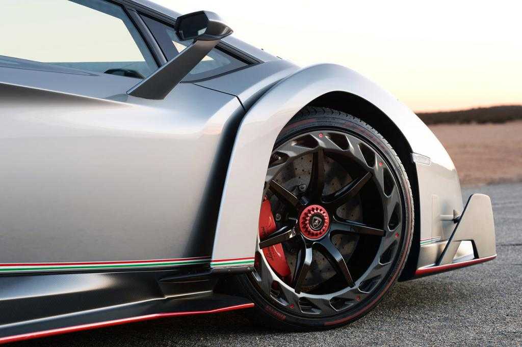 Обскакать конкурентов Veneno удалось благодаря переднему карбоновому сплиттеру массивных размеров, джентльменскому набору воздухозаборников по всему кузову, заднему антикрылу и сокрушающему все рамки диффузору.