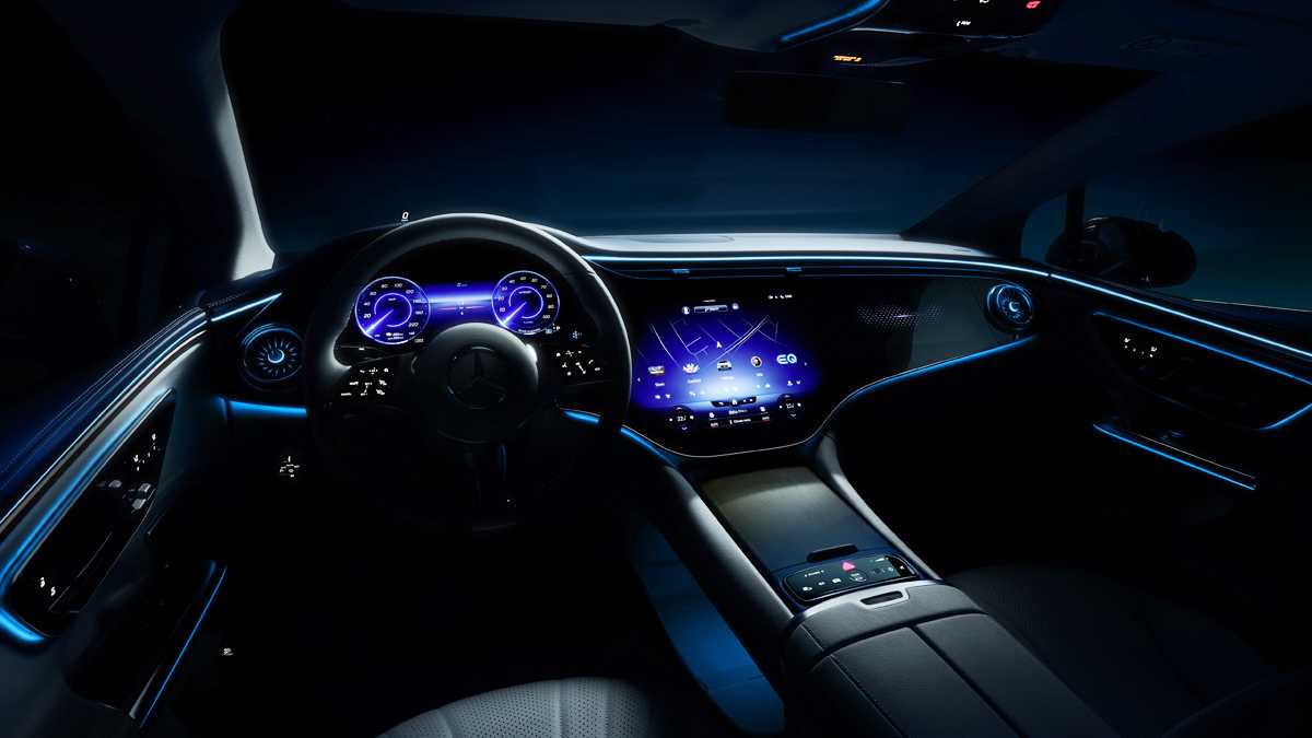 Салон электрического седана EQE. С большой вероятностью E-Class (W214) получит такой же.