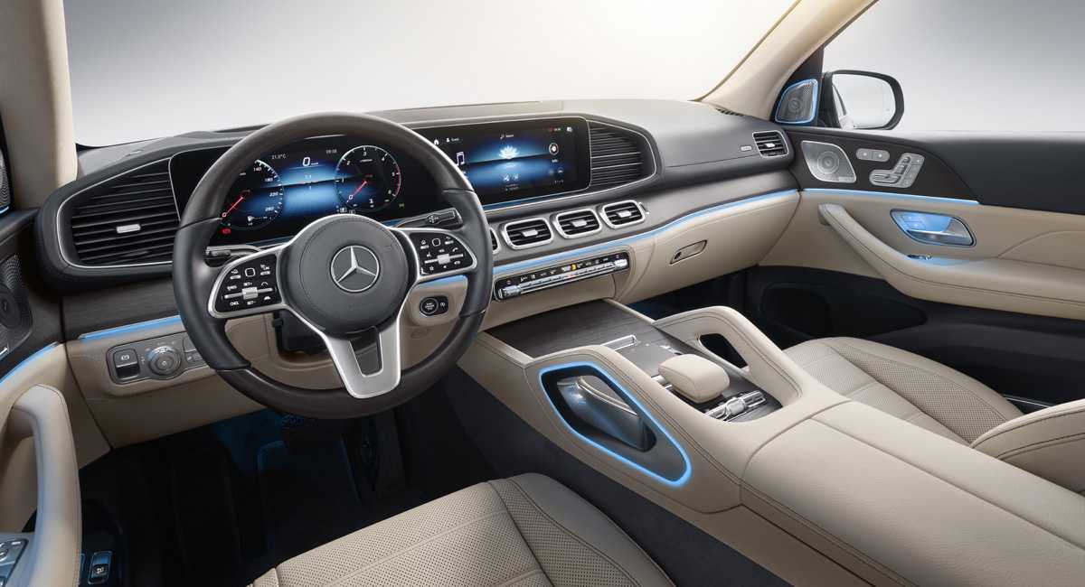 Внутри кроссовер Mercedes GLS 2020 предлагает ставшую уже классической компоновку с двумя спаренными дисплеями на передней панели, но после рестайлинга в 2015 году автомобиль получил обновленную «приборку», взятую от GLE.