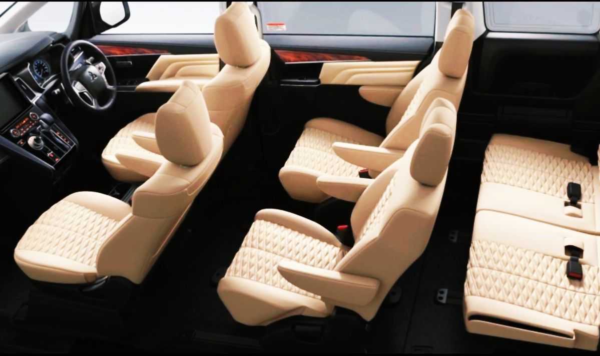 Кроме всего прочего есть восьмиместные варианты минивэна с бонусным местом во втором ряду. Вторая пара дверей оснащена электроприводом, а это значит, что их можно открывать не только вручную, но и на расстоянии. Салон Мицубиси Делика отделан в бежевых или чёрных тонах (фото).