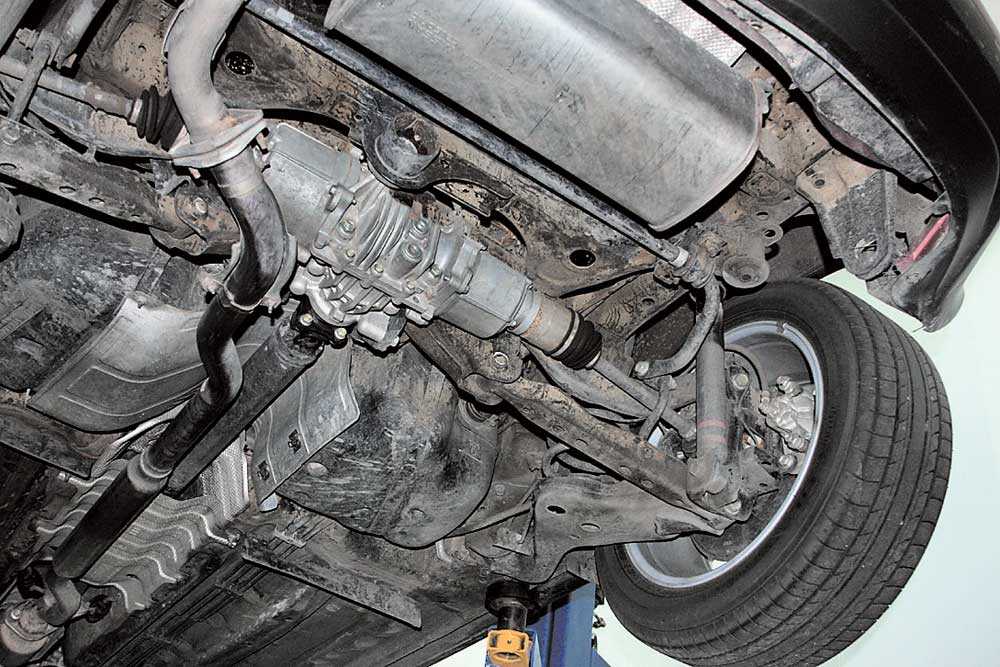 Полноприводной Juke оснащён весьма занятной системой полного привода. Как у большинства современных кроссоверов, у него постоянный передний привод с подключаемой задней осью. Но если обычно она подключается с помощью вискомуфты, срабатывающей при пробуксовке передних колёс, то здесь используются две многодисковые муфты с электронным управлением — по одной на каждое заднее колесо. А значит, компьютер может подавать больше момента на нужную сторону. Ну и стоит отметить, что 4WD здесь не для повышенной проходимости, а для большего контроля и драйва. Кстати, переднеприводной Nismo агрегатируется только механической 6-ступенчатой коробкой передач, в то время как версия с приводом на все колёса — клиноремённым вариатором с семью фиксированными передачами.