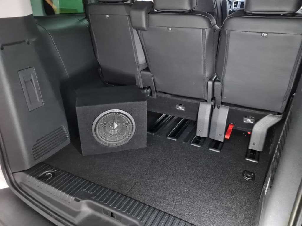 Сабвуфер надежно крепится к одной из петель для груза и не перемещается по багажнику во время движения. За счет этого, сабвуфер можно разместить в любой части багажника