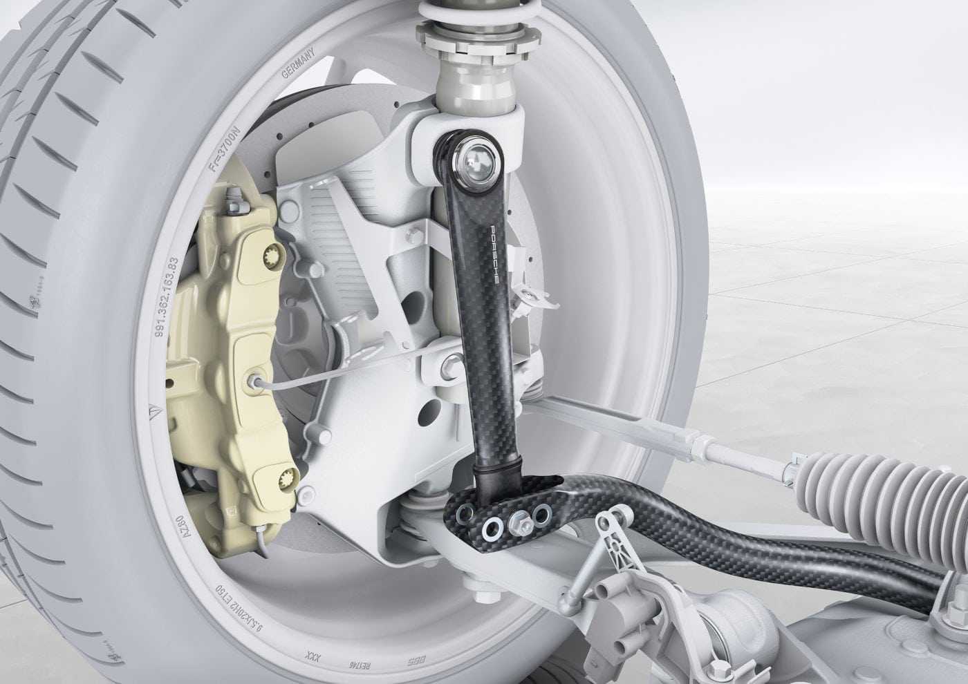 Инженеры изрядно перетряхнули ходовую нового Порше 911 GT2 RS 2018, установив амортизаторы перевернутого типа, более жесткие передние пружины и заменив практически все сочленения в подвеске на сферические шарниры. При этом здесь сохранено полноуправляемое шасси и имеется дифференциал со стопроцентной блокировкой.