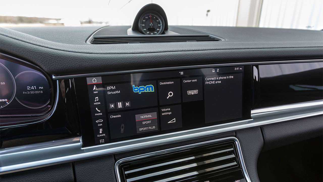 Внутри Порше Панамера 2021 модельного года может удивить лишь новым рулевым колесом и модернизированной системой мультимедиа. Сообщается, что развлекательный комплекс улучшил «слышимость» голосовых команд и научился работать через Apple CarPlay.