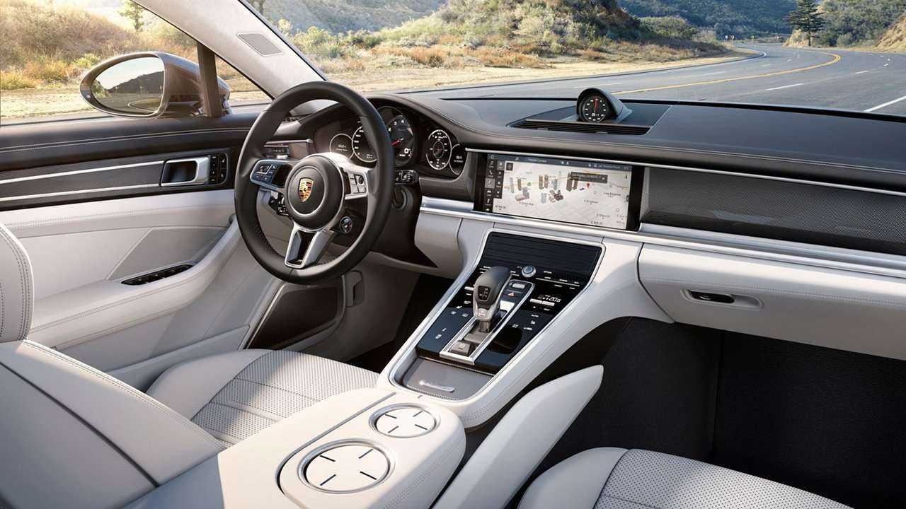 Приборная модель Porsche Panamera 2019-2020 выполнена в «космическом стиле» с ярко выраженными классическими чертами. Стоит отметить целых два семидюймовых дисплея, которые предназначены для контроля функционального состояния автомобиля. Кроме этого установлен мультимедийный дисплей (системы PCM) с длиной диагонали – 12,3 дюймов.