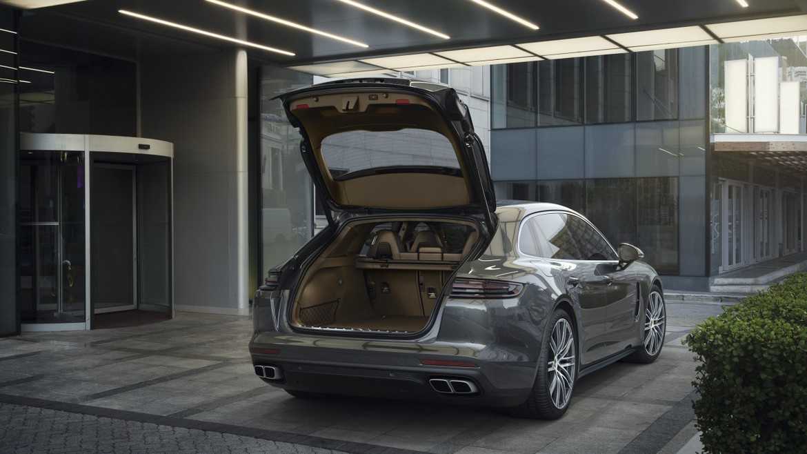 Объем багажника нового универсала Porsche при установленных задних сиденьях составляет 520 литров (при загрузке до верхней кромки сидений; у Panamera 4 E-Hybrid Sport Turismo этот показатель составляет 425 л). Спинки задних сидений складываются в пропорции 40:20:40; если сложить их полностью, багажник Panamera Sport Turismo вместит до 1390 литров поклажи (у Panamera 4 E-Hybrid Sport Turismo – 1295 л).