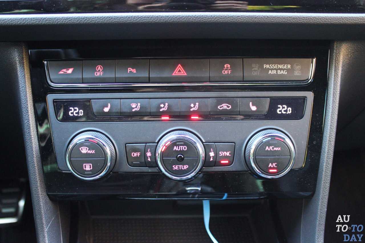 Здесь сделан акцент на сенсорное управление, хотя на руле, в отличие от Гольфа, установлены привычные механические кнопки.