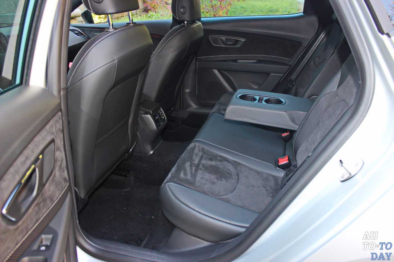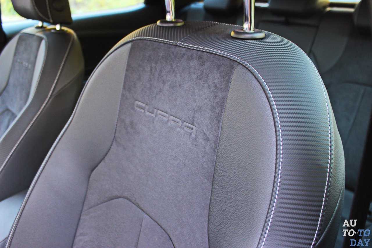 В салоне у водителя постоянно поддерживается боевой и задорный настрой. За счет чего же? Во-первых, благодаря классной комбинированной обивке кресел и дверных карт, в которой сочетаются замша и ткань, по своей структуре и рисунку напоминающая углеродное волокно, и алюминиевых накладок на педали и площадку для отдыха левой ноги. Спортивные сидения с активно выраженной боковой поддержкой и на подушке, и на спинке отлично держат водителя во время драйва. В качестве опции предлагаются и спортивные «ковши». Но я бы не стал их заказывать себе на Cupra, ведь у них меньше различных регулировок. Задние сидения отличаются от «гражданских» версий только материалом обивки. На втором ряду места не очень много, но за собой (при росте 183 см) я не касался ногами спинки.