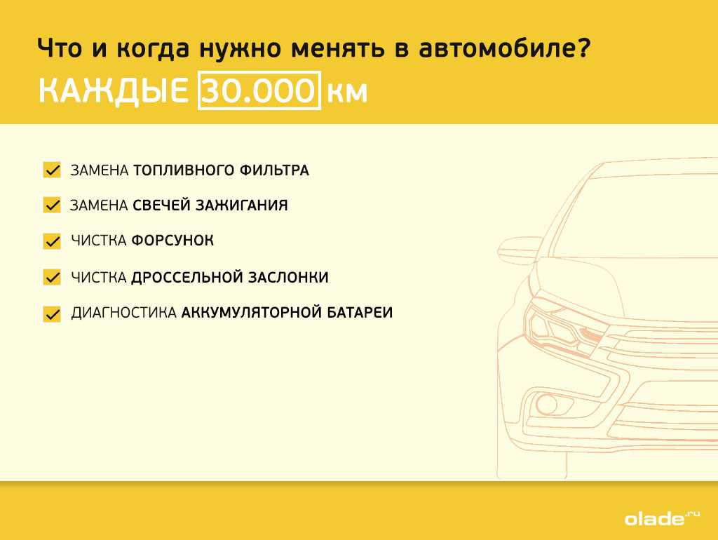 При невыполнении перечисленных действий автомобиль рано или поздно откажется ехать и вам в любом случае придётся устранить причину неисправности. Поэтому, для вашего же комфорта, своевременно позаботьтесь о необходимых действиях при 30-тысячном пробеге.