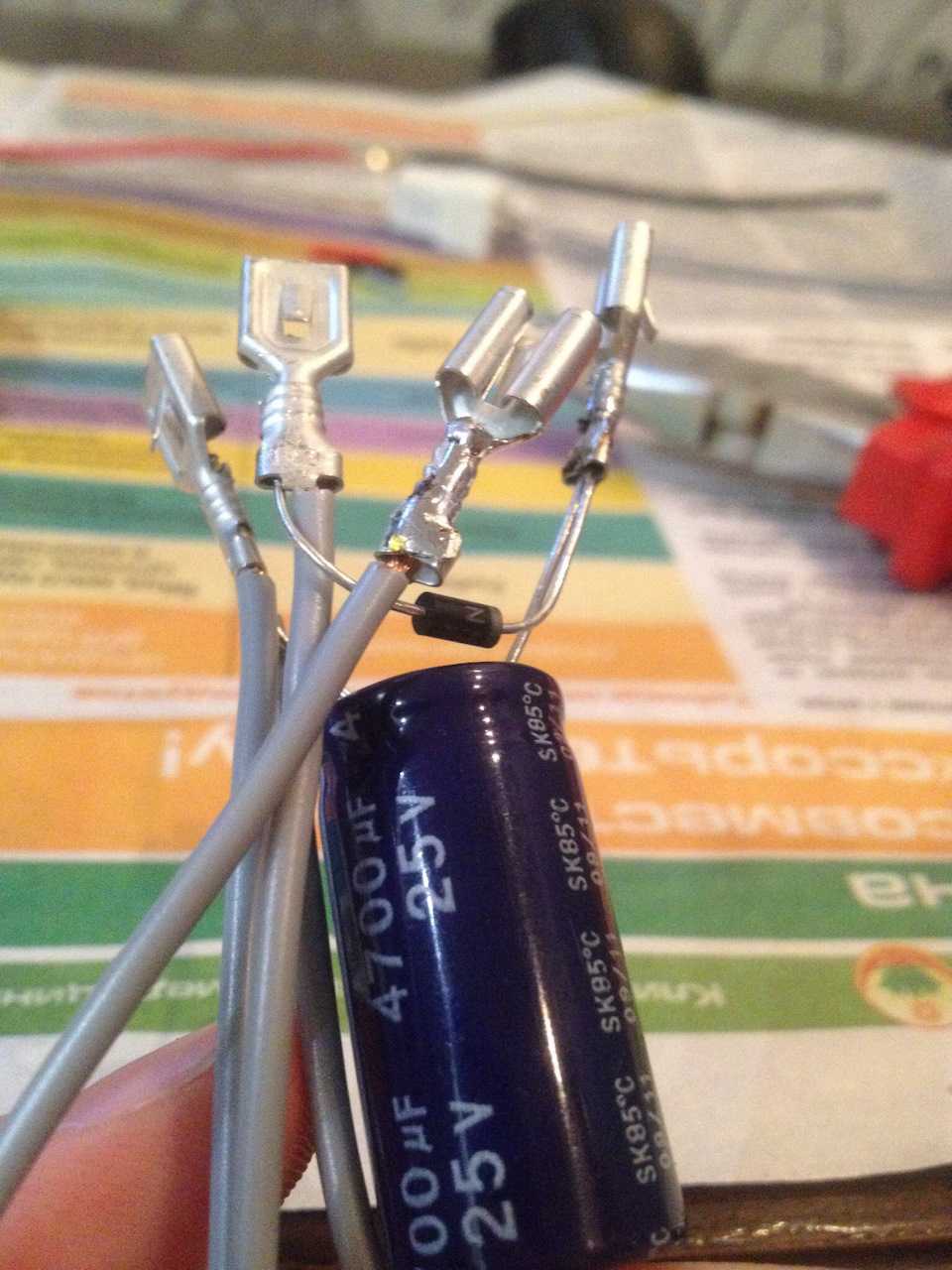 Что мне понадобилось:1. Реле 5-ти контактных 75.3777, 2 шт. — 200р.2. Диод 1N5819 (я хз почему многие пишут IN), 2 шт. — 6р.3. Конденсатор 25V 4700uF, 2 шт. — 52р.4. Разъем для реле с проводами (пригодился только один), 2 шт. — 100р.5. Мама для поворотников с проводами, 2 шт. — 40р.6. Папа для поворотников с проводами, 2 шт. — 40р.7. Клеммы мама, 8 шт. — 16р.8. Паяльник — был, припой — 80р.