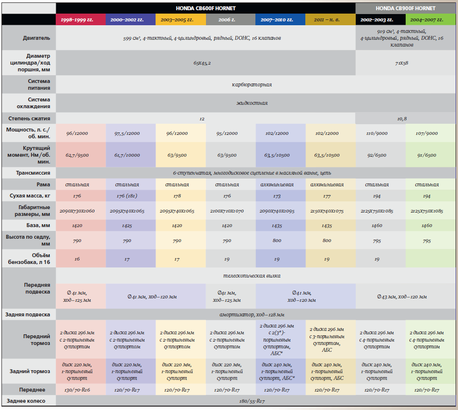 - Honda Hornet 600 (1998-2002) – первый этап.