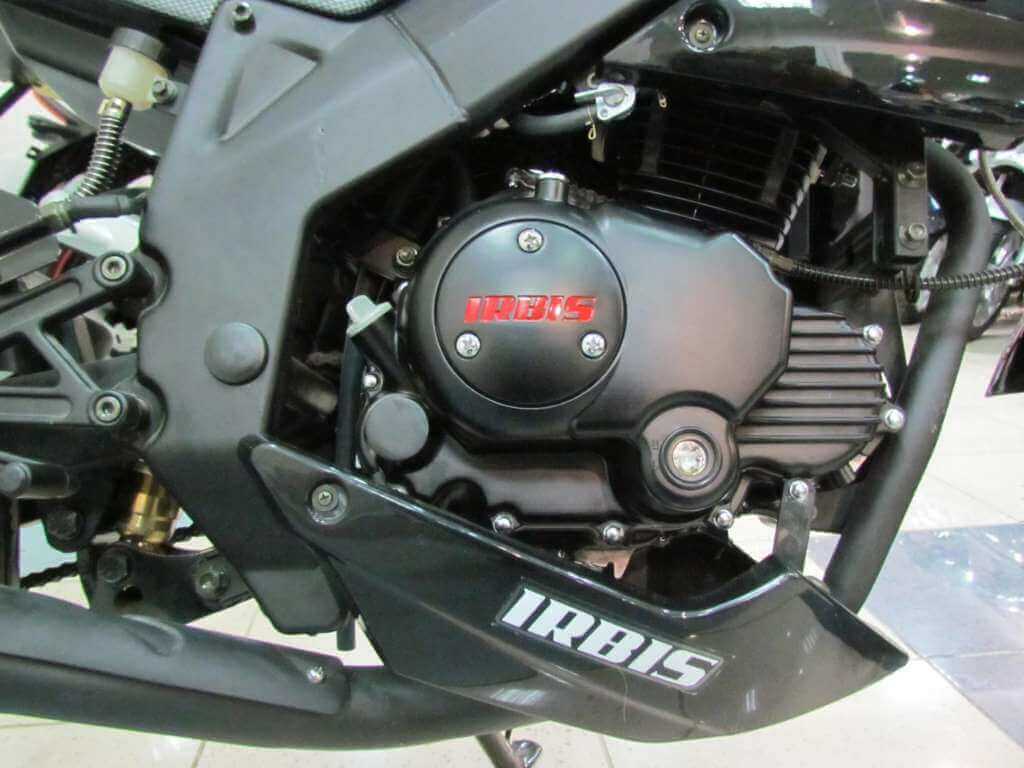 Мощный четырехтактный двигатель отличается простотой эксплуатации и надежностью, имеет воздушное охлаждение. Впрыск топлива производится карбюратором. Мотор запускается кик-стартером и электростартером. Жестких требований по топливу нет. Вполне подойдет бензин марки АИ92. Максимальная скорость irbis ttr 250 составляет 120 км/час.