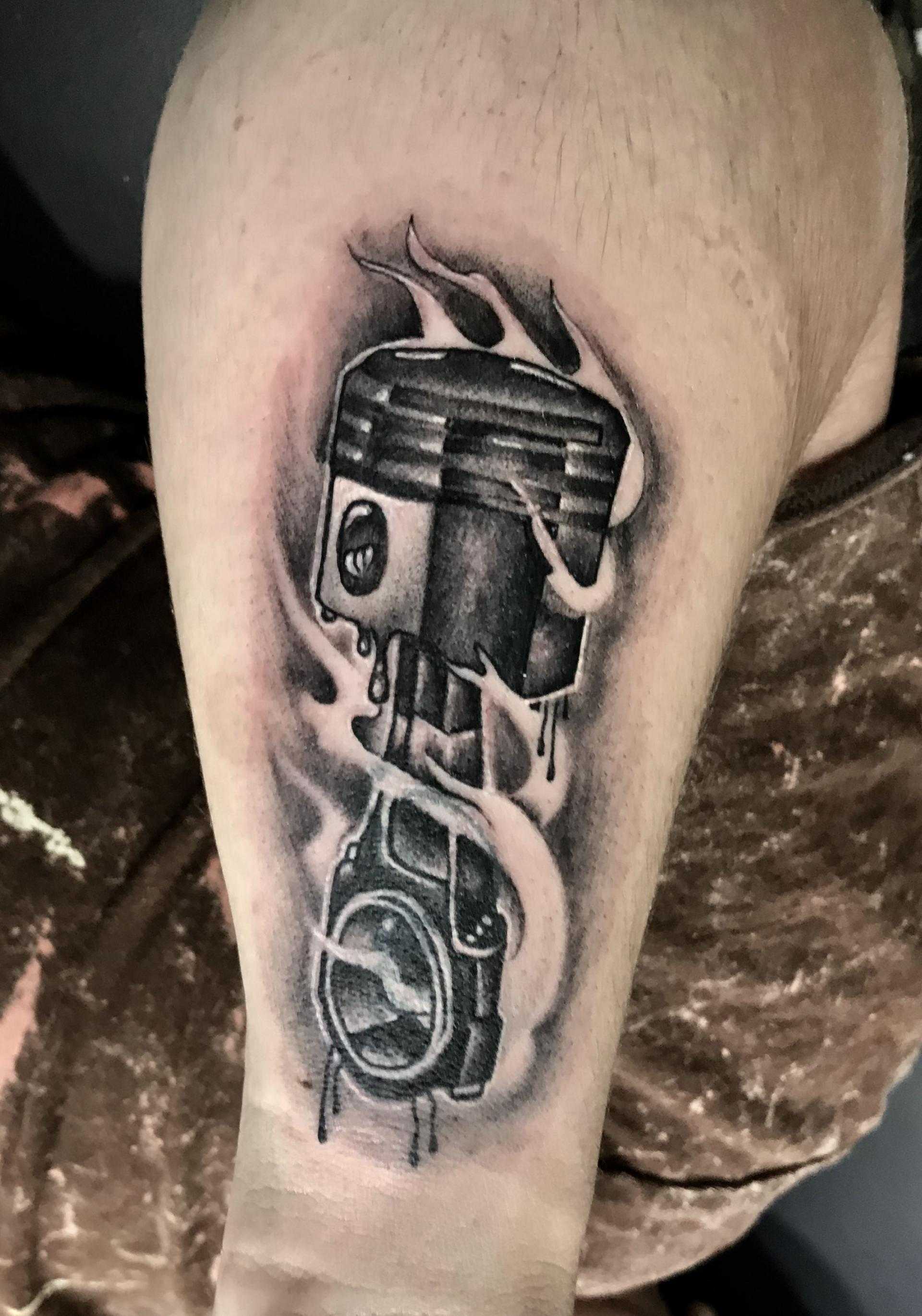 В отдельную категорию можно выделить тату с изображением непосредственно мототехники и атрибутики. Зачастую это различные изображения мотоциклов, чаще всего в цвете.