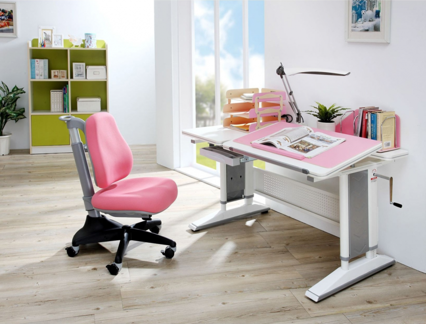 Мебель, настраиваемая по вертикали, оборудована большой столешницей с выдвижным пеналом и надстройкой для удобного хранения канцелярии. Вы можете легко менять высоту изделия и его угол наклона посредством механизма газ-лифт. Мебель сделана из безопасных материалов. Модель выпускается в различных цветовых вариантах.