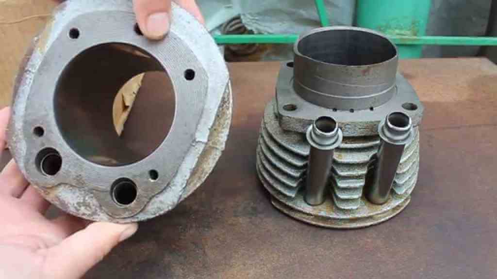 - Снимаем гайки крепления цилиндра и, пошатывая, аккуратно снимаем цилиндр со шпилек.