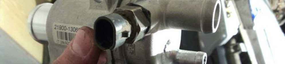 Датчик температуры охлаждающей жидкости. Для контроля температуры охлаждающей жидкости в головку блока цилиндров двигателя ввернут датчик, связанный с указателем температуры в комбинации приборов. В выпускном патрубке, рядом с корпусом термостата, установлен датчик температуры охлаждающей жидкости, выдающий информацию для контроллера. Датчик температуры охлаждающей жидкости калина