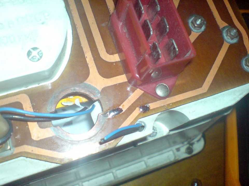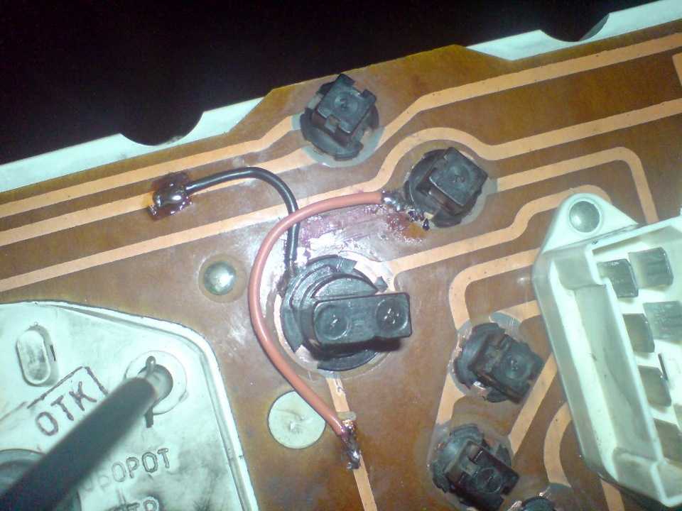 Провод на приборке идет не очень удобно, после него оранжевый еще подается на лампочку недостаточного уровня тормозной жидкости и мне пришлось разрезать дорожки.