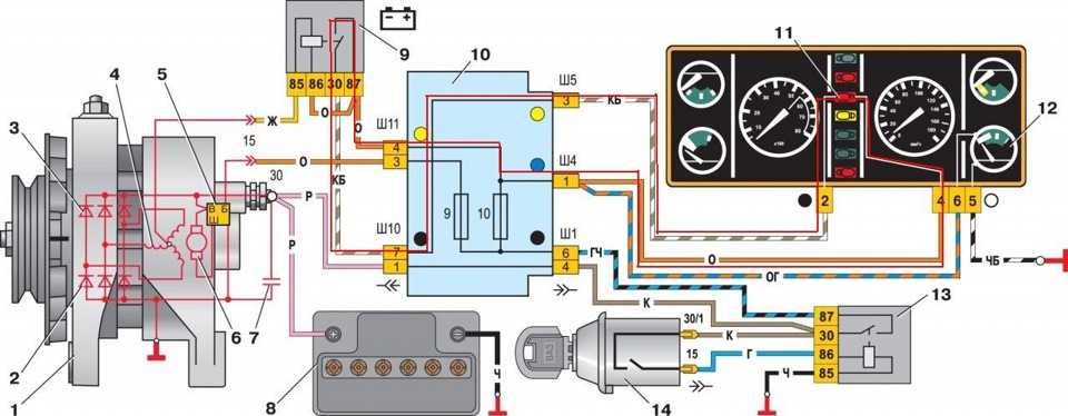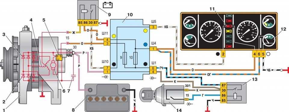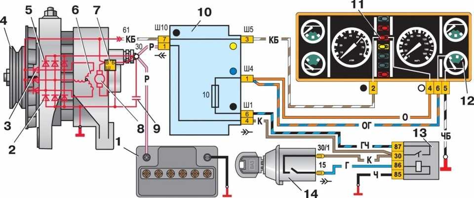 Не доверять именитому сайту причин не было (как оказалось зря). Вызвонил проводки, взял реле, подключил согласно схеме, а воз и ныне там… Лампочка контроля как не горела так и не горит. И я застопорился. Но потом меня надоумило поискать схемы включения на других автомобилях и я нашел схему включения генераторов старого и нового образца на автомобилях 2105-04.