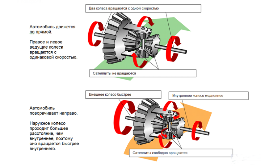 Он распределяет усилие таким образом, что всегда крутится только одно колесо.