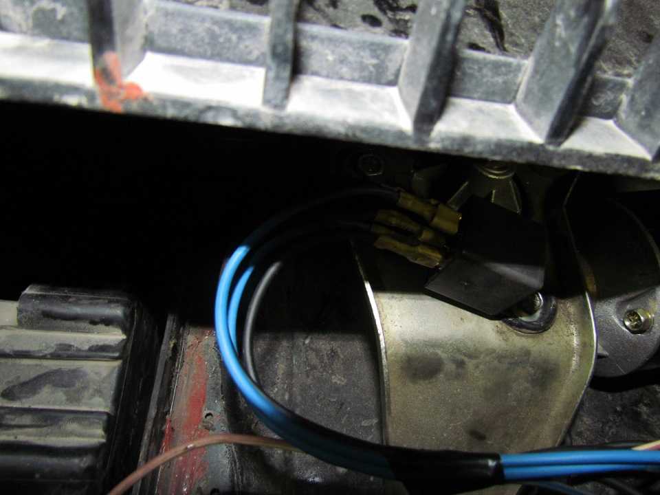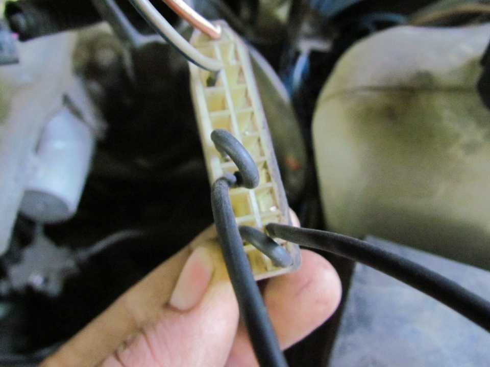 - Белый провод от ЧЯ – на красный провод к моторчику.