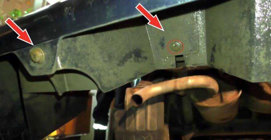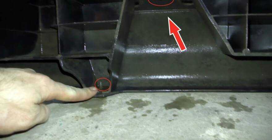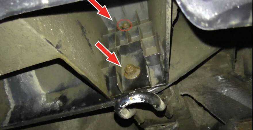- Далее находим крепление к усилителю, которые расположены у внизу под бампером.