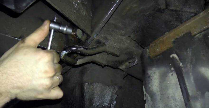 - Демонтировать две крепежные гайки с помощью головки на 13 миллиметров. В случае с ВАЗ 2114 имеется по две такие гайки с каждой из сторон.