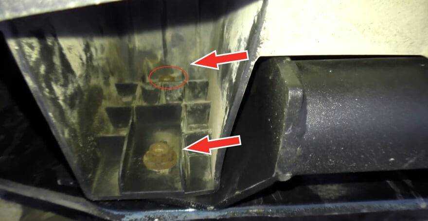 - С помощью ключа на 10 миллиметров открутите внутри расположенные две крепежные гайки.