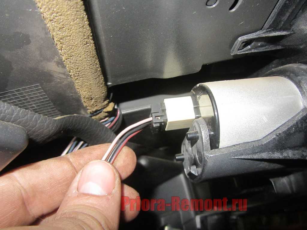 Теперь остается отсоединить несколько разъемов. Первый — от блока управления отопителем: