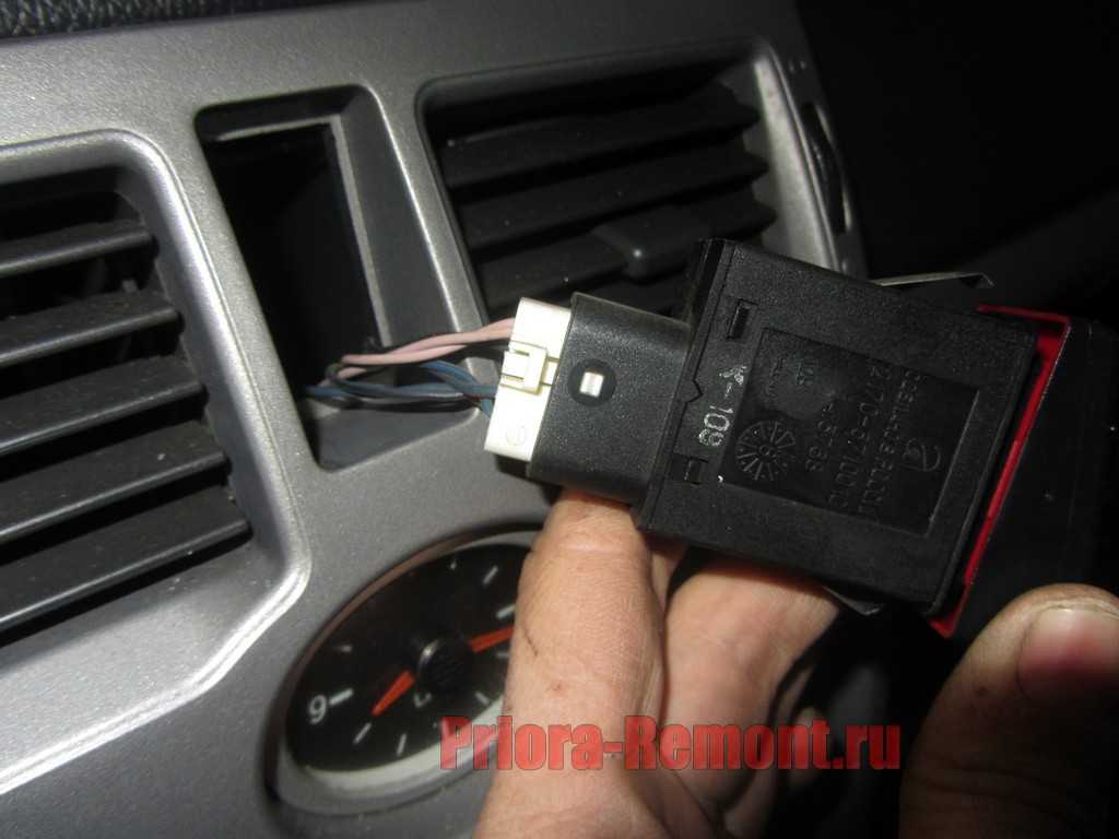 И последний — от кнопки включения аварийной сигнализации. Удобнее всего это делать при уже извлеченной кнопке из корпуса консоли: