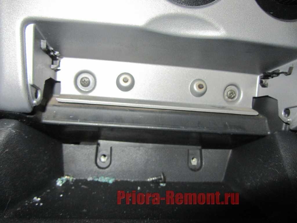 После того, как демонтируете магнитолу, следуйте инструкции, объясняющей, как снять центральную консоль на Приоре: