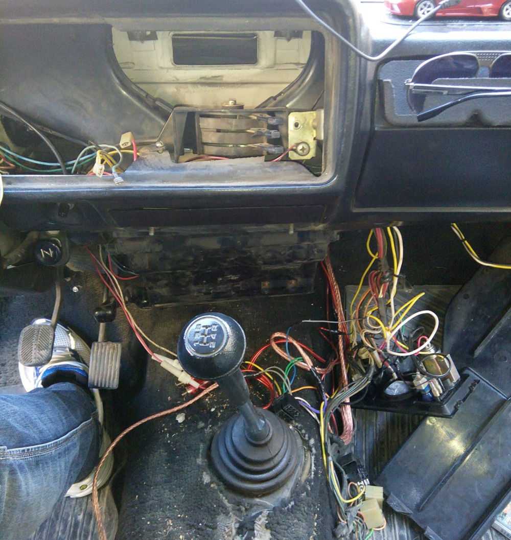 Сначала необходимо провести одну подготовительную операцию: убрать рычаг переключения передач. В ВАЗ 2107 он создаёт серьёзные проблемы при демонтаже печного вентилятора. Затем следует вынуть магнитолу из её ниши. Крепится она на двух саморезах. Вынимая магнитолу, не стоит забывать о проводах, которые находятся за ней. Устройство аккуратно выдвигается из ниши так, чтобы в образовавшуюся щель между магнитолой и передней панелью можно было просунуть руку и вынуть все колодки с проводами, расположенные на задней крышке магнитолы.